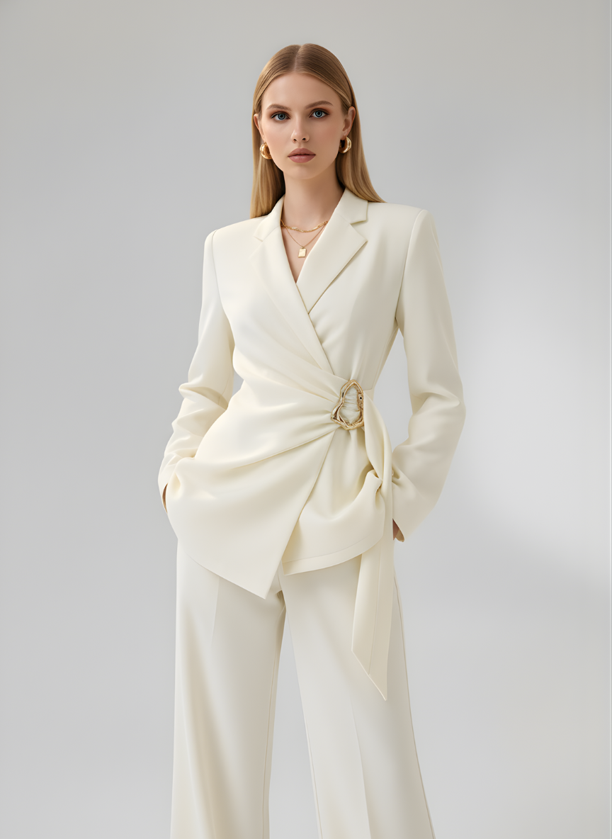 I’m obsessed with this suit set! The fit is sharp, the fabric feels high-end, and the gold buckle detail makes it stand out. Perfect mix of classy and powerful — I felt unstoppable wearing it.
